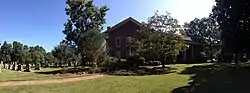 Hopewell Presbyterian Church is a historic Presbyterian church complex and national historic district located near Huntersville, Mecklenburg County, North Carolina. The church was built in 1833–1835, renovated and enlarged in 1859–1860, and expanded by a Sunday School addition in 1928. It is a "U"-shaped brick and brick veneer building composed of three connected blocks all covered with front-gable roofs. The church is a rectangular gable-front brick building standing on a low mortared fieldstone foundation and Greek Revival style design elements. Also on the property are the contributing pumphouse (c. 1925), cemetery gate (1845), and cemetery with burials dating to 1775. The cemetery contains one of the two largest collections of box and chest tombs in North Carolina. General William Lee Davidson of the North Carolina militia, killed in 1781 at the Battle of Cowan's Ford during the American Revolutionary War, is buried in the cemetery.[2]