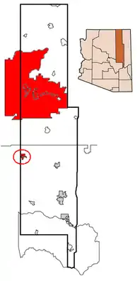 The flag of the Hopi Nation is used by the Native American Hopi people of Arizona in the United States who live on the Hopi Reservation. The flag is a vertical tricolour of turquoise, white, and yellow, with the Hopi symbol in the middle.[2] The flag is accompanied by a red fringe.[1] The Hopi reservation is surrounded by the Navajo Nation.