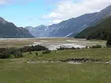 The Hopkins River (Māori: Te Awa Aruhe)[1][2] is in the central South Island of New Zealand.[3] It flows south for 40 kilometres (25 mi) from the Southern Alps into the northern end of Lake Ohau in the Mackenzie Country.[4]