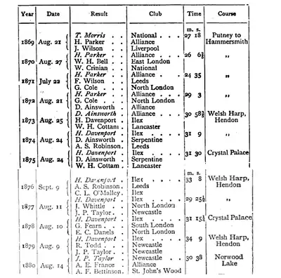 - (6 December 1878). Swimming Champions: Horace Davenport of London, The Athletic World, p. 426-27