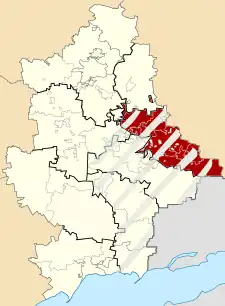 Horlivka Raion (Ukrainian: Горлівський район, romanized: Horlivskyi raion; Russian: Горловский район, romanized: Gorlovsky rayon) is a prospective raion (district) of Donetsk Oblast, Ukraine. It was formally created in July 2020 as part of the reform of administrative divisions of Ukraine. The center of the raion is in the town of Horlivka.[3][4] Population: 662,069 (2022 est.).[2] The area of raion is controlled by the Donetsk People's Republic, which continues to use the old, pre-2020 administrative divisions of Ukraine.