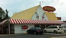 Horne's was a Southern-style restaurant chain located primarily in the Southeast and Southern United States along major highways. It was headquartered in Bayard, Florida. At the chain's peak there were over 60 Horne's locations, but today only one original restaurant remains.[2] Many restaurant locations featured diner-style sit-down service as well as lodging, Texaco gas stations, gift shops, and an ice cream bar, creating a one-stop shop atmosphere.[3] Since many locations were on highways, many Horne's restaurants were open 24 hours a day, 7 days a week.[4]