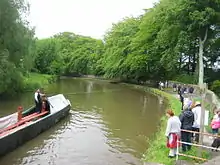 A horse-drawn boat or tow-boat is a historic boat operating on a canal, pulled by a horse walking beside the canal on a towpath.