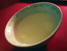 Mongolian horses are valued for their milk, meat and hair. William of Rubruck described the historical milking process as follows: "They stretch a long rope on the ground fixed to two stakes stuck in the ground, and to this rope they tie toward the third hour the colts of the mares they want to milk. Then the mothers stand near their foal, and allow themselves to be quietly milked; and if one is too wild, then a man takes the colt and brings it to her, allowing it to suck a little; then he takes it away and the milker takes its place."[35] Much the same procedure is still used today. In the summer, mares are milked six times a day, once every two hours. A mare produces an average of 0.11 lbs of milk each time, with a yearly production of 662 lbs total.[21] The milk is used to make the ubiquitous fermented drinks of Mongolia, airag and kumis. One particular variety of "black" kumis, caracosmos, was made entirely from the milk of black mares; this was reserved for the aristocracy.[35] William of Rubruck reported that Batu Khan had the milk of three thousand mares collected and sent to his court on a daily basis.[35] In large herds, the gentlest animals are the preferred milk horses. Milk is also boiled and dried into hard white chunks that can be stored and eaten on journeys. During the communist era, Mongolian factories and mines continued to maintain herds of horses specifically for the purposes of providing airag for their workers, which was considered necessary for health and productivity.[49]