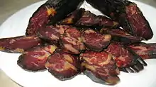 Horses are considered meat animals in Mongolia. Each 600 lb. Mongol horse yields about 240 lbs. of meat.[52] The horse in question may be an old, barren, injured or unneeded animal, such as a stallion who has lived past his prime. The meat of horses is considered to be safer to eat than the meat of other livestock. As one Mongolian explained, "Because the horse does not get diseases that other livestock become sick of, [sic] such as tuberculosis and other inflammation diseases, its meat and milk are considered to be clean." William of Rubruck reported that the Mongols used the intestines of the horses to make sausages. Horses are considered to have the fourth most desirable kind of meat, after sheep, cattle and goats. Mature animals are preferred to young ones, as the taste is considered better. Horses are slaughtered in late November when the animals are at their fattest; it is considered bad practice to slaughter them in the summer.[53]