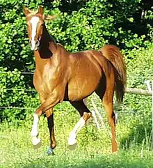 The so-called "natural" gaits, in increasing order of speed, are the walk, trot, canter, and gallop.[5] Some consider these as three gaits, with the canter a variation of the gallop, even though the canter is distinguished by having three beats, whereas the gallop has four beats. All four gaits are seen in wild horse populations. While other intermediate speed gaits may occur naturally to some horses, these four basic gaits occur in nature across almost all horse breeds.[1] In some animals the trot is replaced by the pace or an ambling gait.[5] Horses who possess an ambling gait are usually also able to trot.