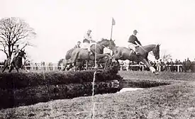 Wales has produced several jockeys of note, including Jack Anthony who won the Grand National on three occasions (1911, 1915 and 1920),[6] Hywel Davies who won it in 1985 and Carl Llewellyn who won the race in 1992 and again in 1998. Another notable Welsh jockey was Dick Francis, who was British jump racing Champion Jockey in the 1953-54 season and was famous for riding Devon Loch when the horse slipped close to the winning post when leading the 1956 Grand National.[7] In retirement Francis became a best-selling author of crime novels set in the racing world.