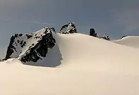 Horsemans Pack (8,156 feet (2,486 m)), and "The Horseman" (7,760 feet (2,370 m)), are summits located in North Cascades National Park in the U.S. state of Washington.[3] Located in the south unit of the park, Horsemans Pack is .70 mi (1.13 km) west of Snowfield Peak and the Neve Glacier descends from the east slopes of the mountain. The first ascent of Horsemans Pack was made August 1, 1931, by William Degenhardt and Herbert Strandberg who also named this feature, whereas the first ascent of The Horseman was made July 17, 1982, by John Roper, Silas Wild, and Russ Kroeker.[4] The Horseman's toponym has been officially adopted by the U.S. Board on Geographic Names, but Horsemans Pack has not.[2]