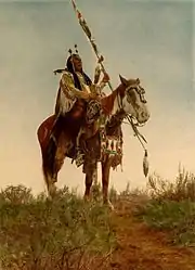 There are multiple theories for how Native American people obtained horses from the Spanish, but early capture of stray horses during the 16th century was unlikely due to the need to simultaneously acquire the skills to ride and manage them. It is unlikely that Native people obtained horses in significant numbers to become a horse culture any earlier than 1630. From a trade center in the Santa Fe, New Mexico area, the horse spread slowly north.[28] The Comanche people were thought to be among the first tribes to obtain horses and use them successfully.[29] By 1742, there were reports by white explorers that the Crow and Blackfoot people had horses, and probably had had them for a considerable time.[28] The horse became an integral part of the lives and culture of Native Americans, especially the Plains Indians, who viewed them as a source of wealth and used them for hunting, travel, and warfare.[30]