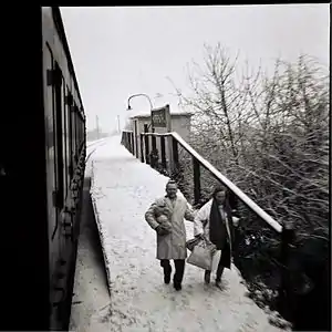 During the Second World War, the local Home Guard cut slits through the corrugated iron shelter so that, in the event of invasion, it might serve as a sort of pillbox.[10] On the basis of an estimated saving of £34,372, passenger services were withdrawn between Oxford and Princes Risborough from January 1963. The track between Thame and Morris Cowley was lifted in 1969,[11] the allegedly deteriorating condition of Horspath Tunnel playing a large part in the decision.[12]