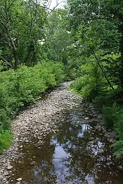 The channel of Horton Creek is sinuous and flows through glacial drift and a rock formation consisting of sandstone.[4]