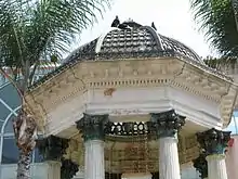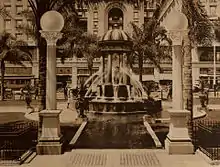 The area of the park was sold to the city of San Diego in 1895 by its namesake, Alonzo Horton.[4] Originally, the plaza was intended for use by his guests staying at the Horton House Hotel.[5] In 1909, the plaza was chosen as the site of a "weather kiosk" provided by the U.S. Weather Bureau. Park commissioners laid out the plaza in harmony with the lines of the kiosk, according to one source, reserving the center for a fountain.[6] Louis J. Wilde, banker and part-owner of the U. S. Grant Hotel, donated funds to help build a fountain located in the center of the Park. Irving J. Gill designed the Broadway Fountain, which was completed in 1910.[1]
