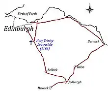 It is impossible to provide an exact classification for Scottish hospitals. Cowan & Easson and Hall use differing terms. Many of these institutions were known simply as hospitals. The term "almshouse" or "poorhouse" was sometimes given to these institutions. In general, hospitals were Church foundations. As such, they served the elderly and provided care for the sick within Western Christian practice. Some would have had a primitive "hospital" function (in the modern sense) with an adjacent herbal or "physic" garden.[18] Both men and women would have been admitted. In most cases it was elderly men. In addition, the Church instituted a class of hospital that was akin to a monastery. These sub-monastic hospitals (e.g. St Mary's in Old Aberdeen – known as Bishop Dunbar's Hospital) in addition to caring for the elderly provided a chantry function with bedesmen praying for the dead. (See Bede House, Old Aberdeen) As such they are sometimes known as "bede houses". In addition leper houses served a specific function with regard to leprosy. Hospitals, in addition to providing care for the elderly and infirm, were places where pilgrims or travellers would rest. It is likely that such institutions would have provided spiritual aid to travellers.[19] Travellers's "hospitals" would have been on or adjacent to what are now called "heritage routes". It is possible that some "traveller’s hospices" would have been akin to the chapels built at bridges to allow travellers to stop and offer prayers for their safe transit.[20] It is likely that any Medieval hospital on or adjacent to such routes would have served several purposes.