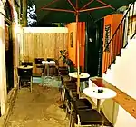 Part of Fernando Lopes's 1964 film Belarmino is set in the Hot Clube. The small patio at the back shown in the picture below is clearly recognisable.