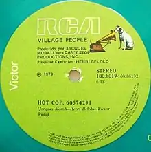 "Hot Cop" is a song by the American disco group Village People recorded for their third studio album Cruisin' (1978). It was written by Jacques Morali and Village People lead singer Victor Willis.[1] It served as Willis' theme song with the Village People.[2] Although not released as a single, it was a disco hit.[3] A medley with "Y.M.C.A." reached number 2 on Billboard's Hot Disco Singles chart.[4]