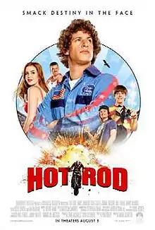 Hot Rod is a 2007 American comedy film directed by Akiva Schaffer (in his directorial debut) and written by Pam Brady. The film stars Andy Samberg as amateur stuntman Rod Kimble, whose stepfather, Frank (Ian McShane), continuously mocks and disrespects him. When Frank becomes ill, Rod raises money for his heart operation by executing his largest stunt yet. The film also stars Jorma Taccone, Sissy Spacek, Will Arnett, Danny McBride, Isla Fisher and Bill Hader.