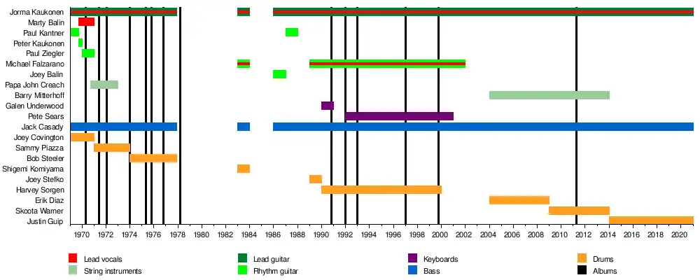 - Jorma Kaukonen – lead guitar, vocals (1969–1977, 1983, 1986–present)