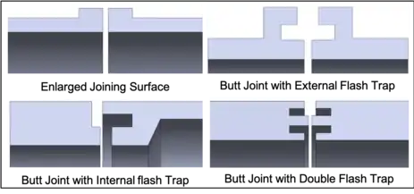 - Butt Joint Flash Trap (External) - This type of joint hides flash on the outside surface and is generally used to reduce noise in surrounding areas.