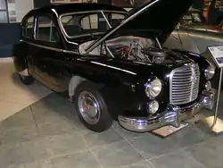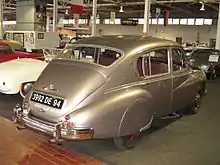 After the war, car production resumed only slowly with fewer than 100 cars produced in each of 1946 and 1947, but by 1948 things were moving a little more rapidly with 460 Hotchkiss cars produced that year.[4] This volume of output was wholly insufficient to carry the company, although truck production was a little more successful with more than 2,300 produced in 1948,[4] and it was support from the truck volumes and from the Jeep based M201 that enabled the company to stagger on as a car producer slightly more convincingly than some of France's other luxury car makers, at least until the mid-1950s. The cars that represented the business in the second half of the 1940s were essentially the company's prewar designs. The 2,312 cc four-cylinder car was now branded as the Hotchkiss 864 while the six-cylinder car was badged as the Hotchkiss 680 with a 3,016 cc engine or as the Hotchkiss 686 with the 3,485 cc engine.[4]