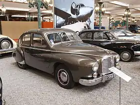 The Grégoire’s commercial performance was affected by the company's 30-year record of producing worthy but conservative saloons. High development costs had to be amortised over the number of cars sold, and the low sales level led to a high retail price which, in turn, depressed sales further. By 1952 the Grégoire was retailing for twice the price of the similarly sized six-cylinder Citroën Traction 15CV.[1] An additional challenge came from government taxation policies during the early 1950s in the French market, which heavily penalised larger cars. At the 1952 Paris Motor Show, it was obvious that several French luxury auto-makers like Delahaye clearly were in trouble. It was noted that for the Grégoire, despite its upmarket aspirations, the company was only able to distribute a very skimpy brochure, provided without any colour pictures.[1] By 1953 output had slowed and only about 40 were produced,[1] and by the time production ceased towards the end of that year, only 247 Hotchkiss Grégoires had been built; of these 235 had been four-door saloons.