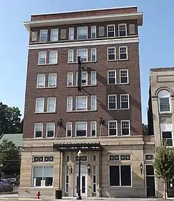 Hotel Norton is a historic hotel building located in Norton, Virginia. It was built in 1921, and is a six-story Colonial Revival style building consisting of a cut sandstone base, brick middle, and a deep stone and wood entablature. The interior features a two-story lobby with a decorative mezzanine level balcony. The hotel was abandoned in the 1970s and 1980s and subsequently acquired by the City of Norton for redevelopment.[3]