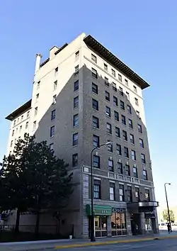 The Hotel President, also known as the Park Towers Apartments, is an historic building located in downtown Waterloo, Iowa, United States. The building was completed in 1929, and it opened as a "showcase hotel."[2] In 1948, Paul "Pinkie" George and five other wrestling promoters from the Midwest founded the National Wrestling Alliance in the hotel. The manager of the hotel at the time was Lark Gable, the grandfather of Olympic gold medal winner Dan Gable.[3] Various companies owned and operated the hotel until it was acquired in 1968 by Elders Inc., a nonprofit group of churches. They converted the building into subsidized housing. It was bought by local developers Brent Dahlstrom and Jim Sulentic in 2011 and they sold it to Huntley Witmer Development of Los Angeles. Huntley Witmer spent $12 million in 2015 renovating the building that continues to house 84 units of federally subsidized housing.[2] It was listed on the National Register of Historic Places in 2017.[1]