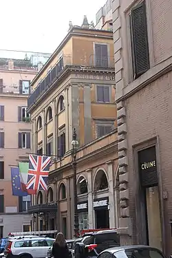 In 1845, the Palazzo di Torlonia’s guesthouse was converted into a hotel known, due to its popularity with British visitors, as the Hotel d’Angleterre.[5] Monarchs, movie moguls, and renowned writers stayed here including Lord Byron, John Keats, Mark Twain, Ernest Hemingway, and Elizabeth Taylor.[5][6]