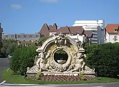 After World War II, the Hôtel du Palais was forced to close for a period in the 1950s. It took a campaign by the mayor to obtain funding to refurbish and reopen the building, under the slogan "No Palace, No Millionaires".[20] Guests have included Coco Chanel, Ava Gardner and Frank Sinatra.[15] The façades and roofs of the hotel were listed as historical monuments on 24 December 1993.[3] The hotel is now at the heart of the modern town of Biarritz, accessible from the lower end of the main shopping street through great wrought-iron gates that encircle the property.[21][20]