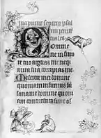 The text is unusual in that the saints' days noted in the calendar, and those mentioned in the litany, are clearly those of Paris, featuring all the otherwise obscure local saints one would expect, such as Saint Cloud and Saint Germain. However the rest of the text follows forms typical of hours written for members of the Dominican order. It is possible that two different models were accidentally used by the scribes, though this seems somewhat careless in a major royal commission.[6] But Queen Jeanne was especially close to the Dominicans, so the mixture of texts may be deliberate.[7] Various mistakes in other parts of the book are corrected, which for appearance's sake they often are not in luxury books, but the calendar has no corrections, despite misspelling over 30 saints' names, and giving 15 the wrong feast days.[8]