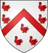 D'argent, au chevron de gueules, accompagné de 7 merlettes du même (2, 2, 1 et 2).[7] ou D'argent, au chevron de gueules, accompagné de 9 merlettes de même (3, 3 et 3).[8] |