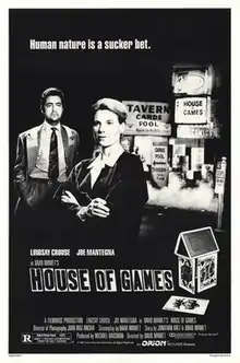 House of Games is a 1987 American neo-noir[2] heist thriller film directed by David Mamet, his directorial debut. He also wrote the screenplay, based on a story he co-wrote with Jonathan Katz. The film's cast includes Lindsay Crouse, Joe Mantegna, Ricky Jay, and J. T. Walsh.