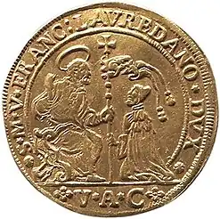 Also significant at this time was Alvise Loredan (1393-1466), who became a galley captain at a young age and served with distinction as a military commander, with a long record of battles against the Ottomans, from the naval expeditions to aid Thessalonica, to the Crusade of Varna, and the opening stages of the Ottoman-Venetian war, as well as the Wars in Lombardy against the Duchy of Milan.[36] The Loredans were proponents of Venice's traditional, maritime orientation, and viewed with distrust its expansion on the Italian mainland (the Terraferma), which had brought it into conflict with Milan. Alvise Loredan shared this view, as can be seen from a proposal he brought before the Great Council in February 1442, ordering the governors of Bergamo to demolish its fortifications as a sign of goodwill and trust towards Visconti, following the conclusion of peace with Milan at the Treaty of Cremona.[11] He also served in a number of high government positions, as provincial governor, Savio del Consiglio, and Procuratore de Supra of Saint Mark's Basilica, and was Count of Bergamo and Belluno. He died in Venice on 6 March 1466, and was buried in the Church of Santa Maria dei Servi.[36]