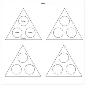 To elect the members of the House, Puerto Rico is divided into forty (40) representative districts that do not follow a particular pattern; they are strictly based on a similar number of inhabitants. These districts are in turn divided into one or more precincts: an electoral division which, in turn, is constituted by colleges.[13] For each district, citizens may vote only for one candidate from the district in which they declared residence by first-past-the-post. District representatives are expected to give priority to matters related to the district they represent but are not required to do so by law.