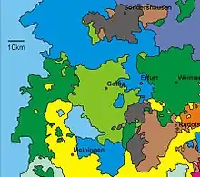 | In 1319 Käfernburg-Wiehe reintegrates the County of Käfernburg | |||||||