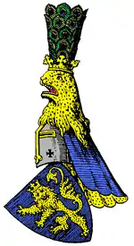 The House of Schwarzburg was one of the oldest noble families of Thuringia. Upon the death of Prince Friedrich Günther in 1971, a claim to the headship of the house passed under Semi-Salic primogeniture to his elder sister, Princess Marie Antoinette of Schwarzburg who married Friedrich Magnus V, Count of Solms-Wildenfels.[1][2] Reigning over the County of Schwarzburg and founded by Sizzo I of Schwarzburg (died 1160), the family split in the 16th century into the lines of Schwarzburg-Sondershausen and Schwarzburg-Rudolstadt, with the Sondershausen dying out in 1909.