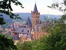 There are over ten different theories about the origin of the counts of Stolberg, but none has been commonly accepted. Stolbergs themselves claimed descent from the 6th century Italian noble, Otto Colonna. This claim was symbolized by the column device on the Stolberg arms.[1] However, it is most likely that they are descended from the counts of Hohnstein, when in 1222 Heinrich I of Hohnstein wrested the county from Ludwig III.[1] The first representative of this family, Count Henry of Stolberg, appears in a 1210 document, having already been mentioned in 1200 as Count Henry of Voigtstedt. Although Voigtstedt near Artern was the initial seat of this comital family, it had moved to Stolberg (Harz) no later than the beginning of the 13th century. The castle there remained in the hands of the family until they were dispossessed as part of the 1945 land reform in the Soviet Zone of occupation in Germany created after the Second World War.
