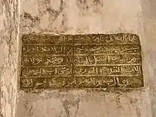 Following Girgis al-Dahdah, the family's line of descent features at least six successive priests, beginning with his son who became a monk under the name of Mikhail.[13] One of these priests refers to himself as "the priest Hanna son of the priest Ibrahim al-Dahdah" on the margins of a liturgy book dated on from 1572 on the sacrament of marriage for the parish church of Saint Georges of Aqoura, and appears to have copied a similar book in 1560.[14] A paternal cousin of this priest Hanna, Sulayman al-Dahdah is recorded by Patriarch Istifan al-Duwayhi as having copied a liturgy book in Aqoura as early as 1552. Another later al-Dahdah cleric, Ighnatius, is recorded as having overseen the rebuilding of 'Aqura's parish church, named after Saint George in 1730, according to an inscription in the Arabic vernacular language and Garshuni script now located to the left of the western entrance of the 20th century church.[15]