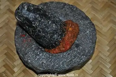 - Sometimes powders like chili powder, sambar powder and other masala powders are also ground in it.