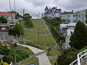Traditionally, residential sections were quarter acre[3] (roughly 1000 sq m), but typical section sizes have been getting much smaller since the middle of the 1900s.[4] After a series of controversies over slum-like housing-conditions of the urban poor, from 1936 the then Labour government developed State housing – suburban housing built by the government and rented to poorer families. This housing stock was generally very well built and remains a feature in most cities, although now often privately owned.[5] Urban areas, where about 86% of New Zealand residents live,[6] are becoming more dense,[7] but remain very sparsely settled by international standards.[8] Many old office-blocks and church-buildings have been converted to apartments in New Zealand's major centres.[9][10]