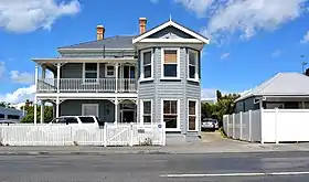 Houses from this period are divided into cottages and villas. The first houses built in New Zealand were cottages.[20] Villas were the larger and more expensively built equivalent. The typical villa has the kitchen to the rear of the house and separate from the dining room, as food preparation was meant to occur out of sight.[21]