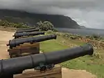 As a historic and still-working fishing village, Hout Bay's local colour and scenery make it a tourist attraction among both local and international visitors. There are a variety of restaurants in the village as well as two hotels (the Hout Bay Manor and the Chapman's Peak Hotel), a number of bed and breakfasts and self-catering accommodation options. The harbour has restaurants, fresh fish outlets and craft stores, with views of the bay and boat rides to Duiker Island and around The Sentinel. Chapman's Peak Drive is a scenic mountain drive and underwent renovations to ensure the safety of travellers using the route.[22] The East and West forts built by the Dutch in the 18th century can also be visited, with the original cannons and barracks still standing on the slopes of Chapman's Peak. The East Fort is the oldest operating gun battery in the world.[23] The mountains surrounding Hout Bay also have hiking trails. In the same area is a bronze statue of a leopard on a rock at the water's edge, looking out over the ocean.