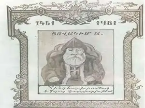 Hovakim I, also known as Hovakim of Bursa, was the first Armenian Patriarch of Constantinople under the authority of the Catholicos of Armenia and of all Armenians. He and his community were invited by the Ottoman Sultan Mehmed II to the city from Bursa in 1461, eight years after the Fall of Constantinople (1453). Hovakim I was recognized as the religious and secular leader of all Armenians in the Ottoman Empire, and carried the title of milletbaşı or ethnarch as well as patriarch. He was Armenian Patriarch from 1461 to 1478.[1]