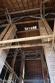 At the same time that Hovander was planning and designing the farmhouse, he was also planning the barn.[20] While the farmhouse is representative of Swedish architecture, Hovander's design for the barn was influenced by the barn designs he saw in the United States.[21] Hovander disliked the common Swedish barn design of the time, as they were typically small, and was instead impressed with the size and loft design of barns that he had seen in the United States.[22] He designed the barn as a large space with a high ceiling, and hired men from Bellingham to build it.[22]