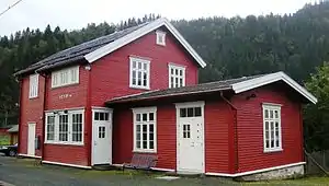 Hovin Station (Norwegian: Hovin stasjon) is a railway station in the village of Hovin in the municipality of Melhus in Trøndelag county, Norway. The station is on the Dovre Line, about 45 kilometres (28 mi) south of Trondheim Central Station (Trondheim S) and about 507 kilometres (315 mi) from Oslo Central Station (Oslo S) at an elevation of 54.8 metres (180 ft) above sea level. Hovin Station is served by local trains to Røros. The station was opened 1864 as part of the Trondhjem–Støren Line.[1] The Gulfoss Tunnel lies just north of this station.