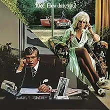 How Dare You! is the fourth album by British band 10cc. Released in 1976, it included UK hit singles "I'm Mandy Fly Me" and "Art for Art's Sake".[1] The album was the band's third to have cover artwork by the Hipgnosis creative team.