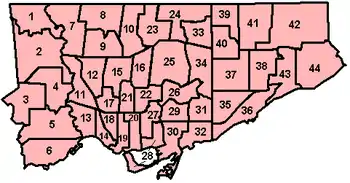 The 2006 Toronto municipal election took place on 13 November 2006 to elect a mayor and 44 city councillors in Toronto, Ontario, Canada. In addition, school trustees were elected to the Toronto District School Board, Toronto Catholic District School Board, Conseil scolaire de district du Centre-Sud-Ouest and Conseil scolaire de district catholique Centre-Sud. The election was held in conjunction with those held in other municipalities in the province of Ontario (see 2006 Ontario municipal elections). In the mayoral race, incumbent mayor David Miller was re-elected with 57% of the popular vote.