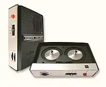 In 1965, Concord offered the Concord F-20 "Sound Camera" tape recorder.[5] The unit used 2.5-inch tape reels with a rim-drive tape transport. It could record 20 to 30 minutes of audio. The F-20 was featured several times during the opening sequence of the Mission Impossible television series between 1966 and 1973.[6]