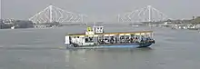 The bridge serves as the gateway to Kolkata, connecting it to the Howrah Station, which is one of the five intercity train terminus stations serving Howrah and Kolkata. As such, it carries the near entirety of the traffic to and from the station, taking its average daily traffic close to nearly 150,000 pedestrians and 100,000 vehicles.[10] In 1946, a census of the daily traffic was taken, which counted 27,400 vehicles, 121,100 pedestrians and 2,997 cattle.[13] The bulk of the vehicular traffic comes from buses and cars. Prior to 1993, the bridge also carried trams. Trams departed from the terminus at Howrah station towards Sealdah, Rajabazar, Shyambazar, High Court, Dalhousie Square, Park Circus, Ballygunge, Tollygunge etc. In 1993, tram service on the bridge was discontinued due to the increasing load on the structure. However, the bridge still continues to carry much more than the expected load. A 2007 report revealed that nearly 90,000 vehicles were plying on the bridge daily (15,000 of which were goods-carrying), though its load-bearing capacity is only 60,000.[23] One of the main reasons for the overloading was that, although vehicles carrying up to 15 tonnes are allowed on the structure, vehicles with 12-18 wheels and carrying loads up to 25 tonnes often plied on it. From 31 May 2007 onwards, overloaded trucks were banned from crossing the bridge and were redirected to the Vidyasagar Setu instead.[24] The road is flanked by footpaths 15 feet (4.6 m) wide, which are thronged with pedestrians.[5]