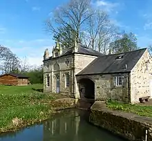 Howsham Mill dates back to c.1755 and is attributed to John Carr of York.[2] It was built in the Gothic Revival style both as a working grist mill to grind grains into flour and as an eyecatcher or folly within the formal parkscape of nearby Howsham Hall.