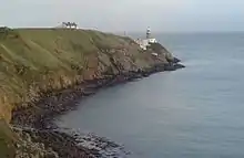 At the southeast corner of Howth Head, in the area known as Bail(e)y (historically, the Green Bayley) is the automated Baily Lighthouse, successor to previous aids to navigation, at least as far back as the late 17th century. This is the subject of a picture, Howth Lighthouse, from the Needles, by George Petrie, which appears in Fisher's Drawing Room Scrap Book, 1835, with an attached poetical illustration by Letitia Elizabeth Landon.[32] At the end of the East Pier of Howth Harbour are the Howth Harbour Lighthouse, built in the 19th century and no longer in service, and the pole-mounted light which replaced it.[33]